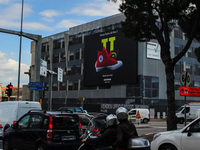 On air da aprile 2016, la nuova campagna pubblicitaria “CONVERSE” con la Maxi affissione a Verona, tra Viale del Lavoro e Largo Perlar.