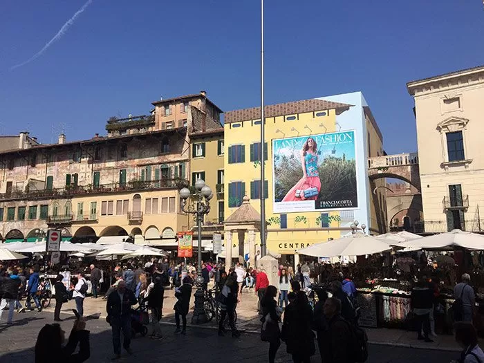Continua la maxi affissione nella centralissima Piazza delle Erbe a Verona, nel cuore della città.