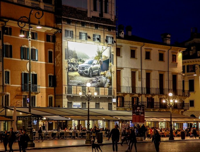 70 mq totali, illuminato, in uno dei contesti più eleganti e rinomati della città di Verona, centro dei flussi provenienti da ogni angolo della città, il maxi impianto gode di una straordinaria visibilità.
