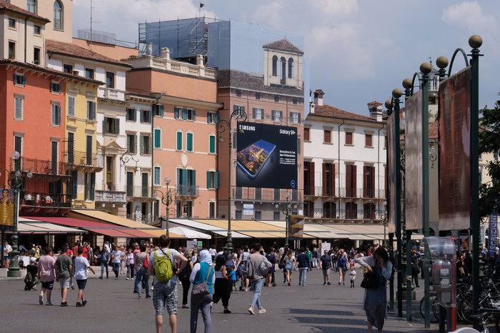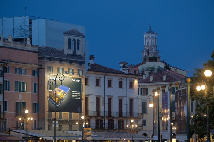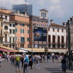 Frontale all’anfiteatro Arena sorge il nuovo maxi impianto di Piazza Bra.